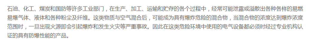 作為專業生產防爆電器的廠家,我們提供給用戶的產品完全能滿足用戶的要求,并符合國家有關標準規定。
