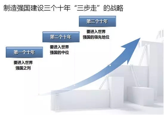 中國制造2025,是中國政府實施制造強國戰略第一個十年的行動綱領,并提出,堅持"創新驅動、質量為先、綠色發展、結構優化、人才為本"的基本方針,堅持"市場主導、政府引導,立足當前、著眼長遠,整體推進、重點突破,自主發展、開放合作"的基本原則,通過"三步走"實現制造強國的戰略目標:第一步,到2025年邁入制造強國行列;第二步,到2035年中國制造業整體達到世界制造強國陣營中等水平;第三步,到新中國成立一百年時,綜合實力進入世界制造強國前列。
